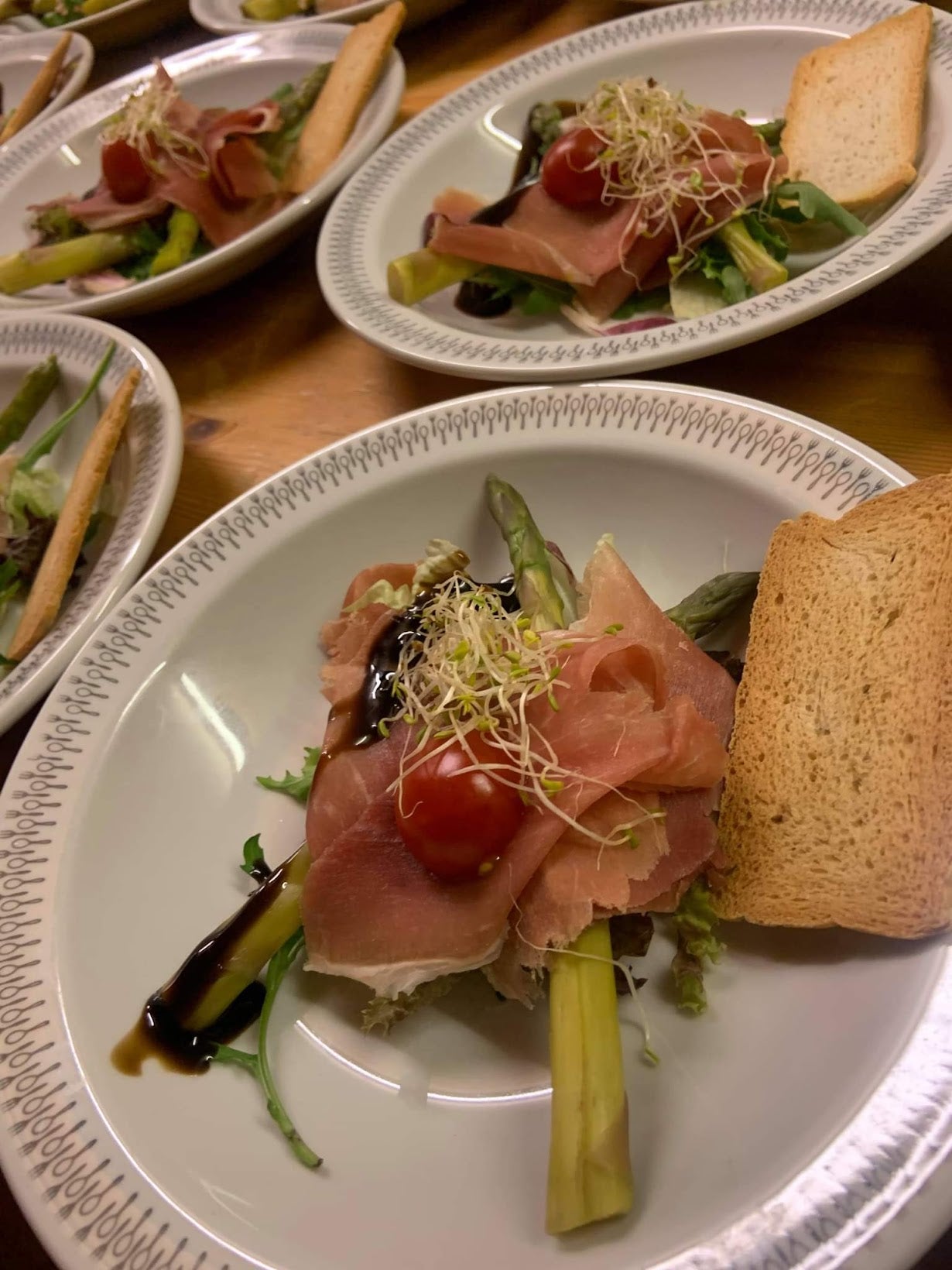 Prøv vår deilige kombinasjon av spekeskinke, saftig melon og balsamicosirup. Den salte spekeskinken, sødmen fra melonen og den delikate balsamicosirupen skaper en harmonisk balanse av smaker. Bestill nå for å gi dine gjester en kulinarisk opplevelse de sent vil glemme.