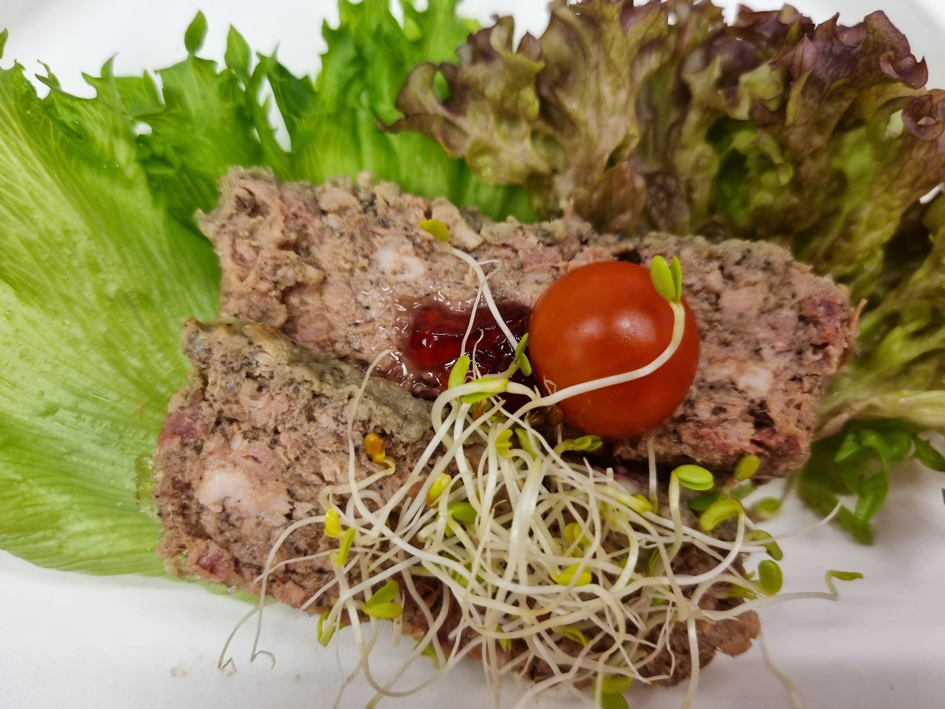 Oppdag den ville siden av smak med vår forførende viltpaté. Den rike og intense smaken av viltkjøtt kommer sammen med frisk ruccolasalat og en drizzle av balsamicosirup. En perfekt balansert delikatesse som vil tilfredsstille dine smaksløker. Bestill nå og gi dine gjester en uforglemmelig kulinarisk opplevelse.